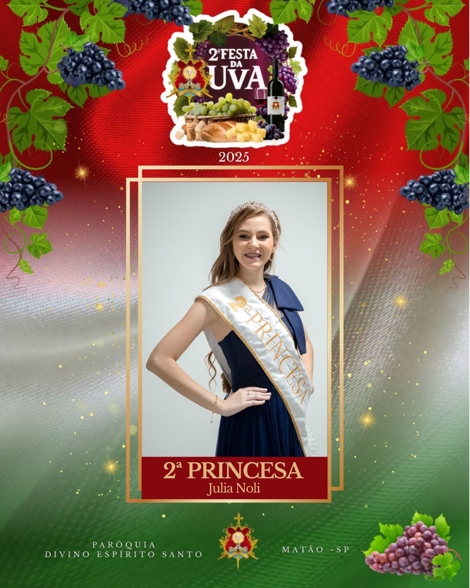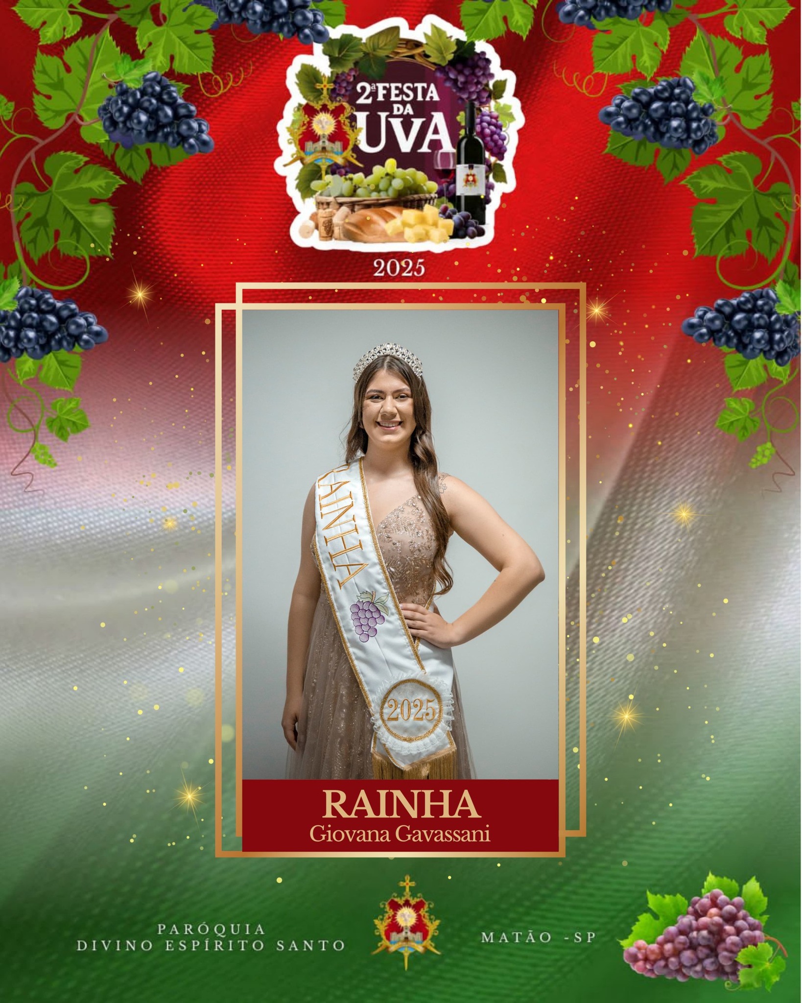A rainha e as princesas da Festa da Uva são figuras centrais na divulgação e celebração da festa, representando a nossa Festa e comunidade.