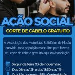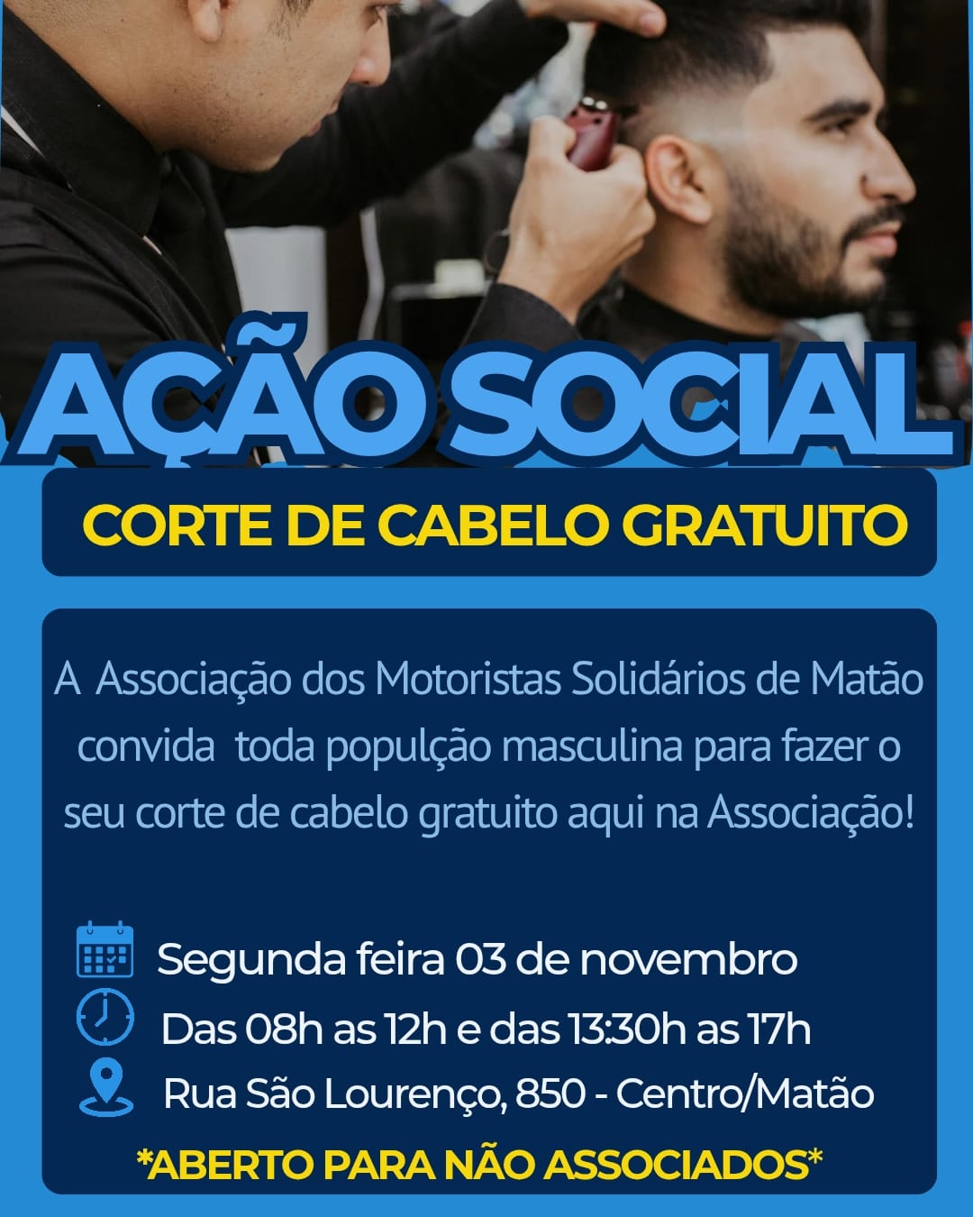 Na segunda-feira dia (03), haverá corte de cabelo masculino (gratuito), para não associados na sede da Associação dos Motoristas.