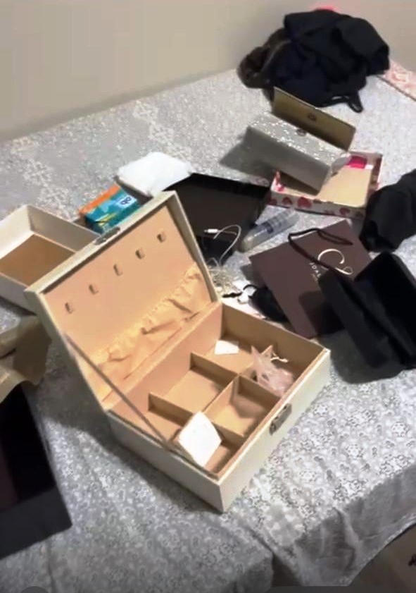 Também não havia ninguém casa, os bandidos aproveitaram surrupiando computador, joias, perfumes e outros objetos.