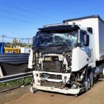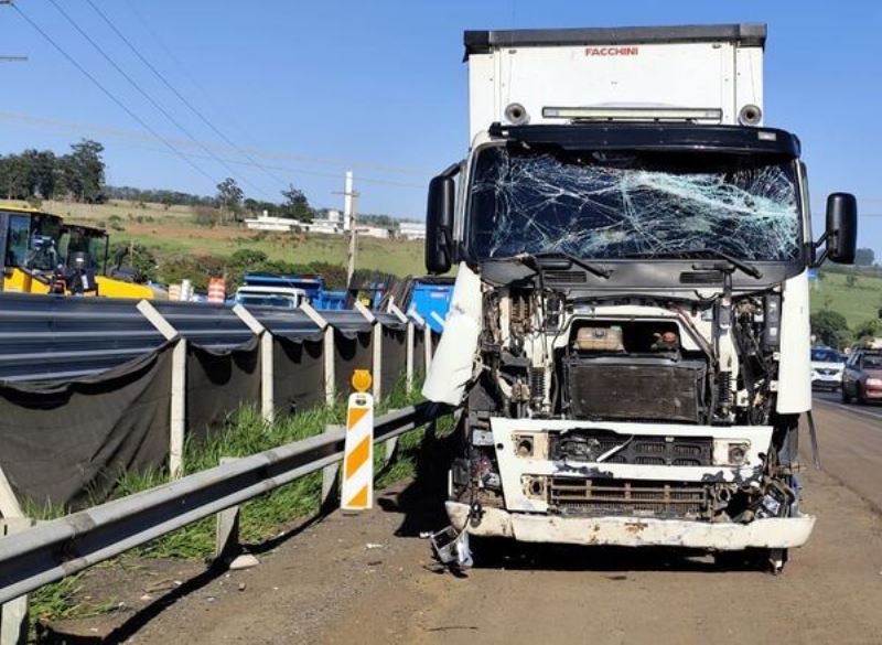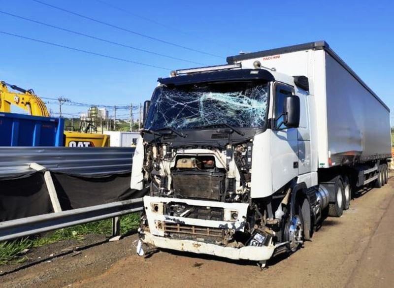 Caminhão bate em defensa metálica na Rodovia Washington Luís (SP-310), na altura do Km 237 sentido interior/capital.