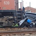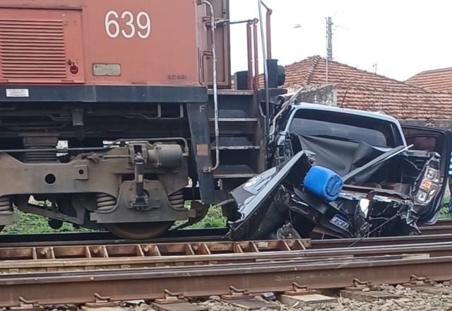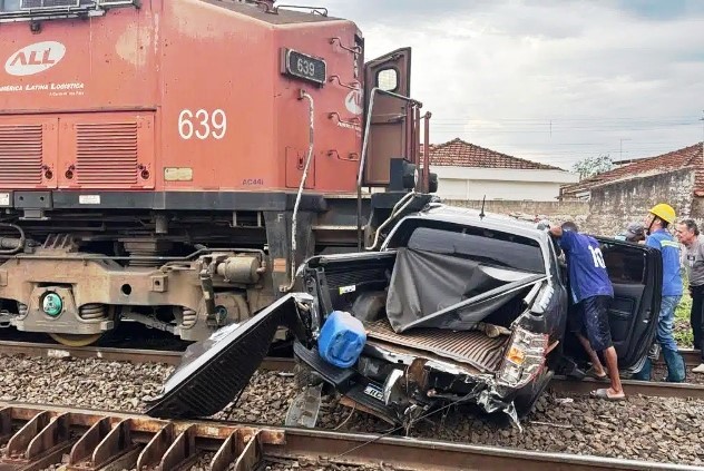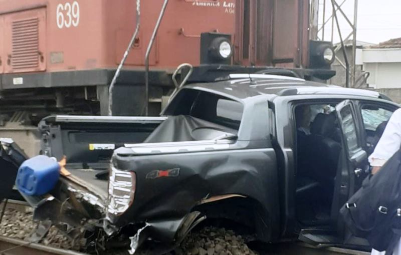 Caminhonete é arrastada por trem quando passava sobre os trilhos