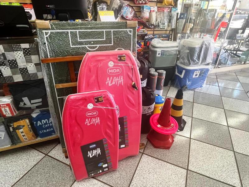 Na linha esportiva têm bolas de basquete, vôlei, raquetes para jogar tênis, copos com a marca do time do seu coração e outros acessórios.