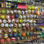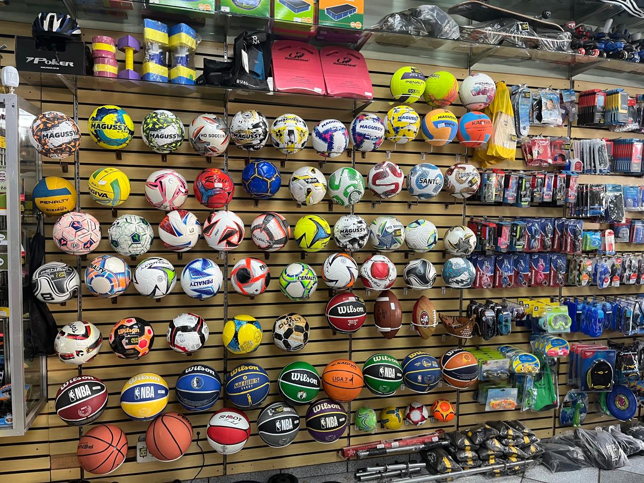 Na linha esportiva têm bolas de basquete, vôlei, raquetes para jogar tênis, copos com a marca do time do seu coração e outros acessórios.