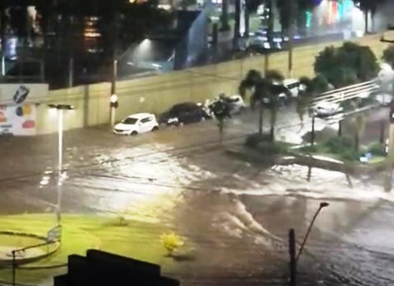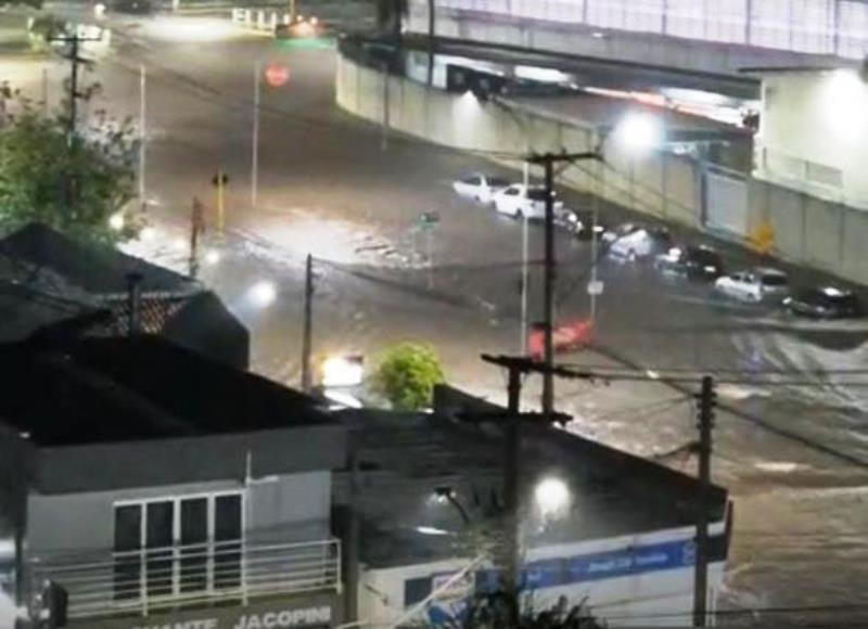Chuva no início da noite desta quarta-feira (03) em Matão, alagou novamente na rotatória da Prefeitura.