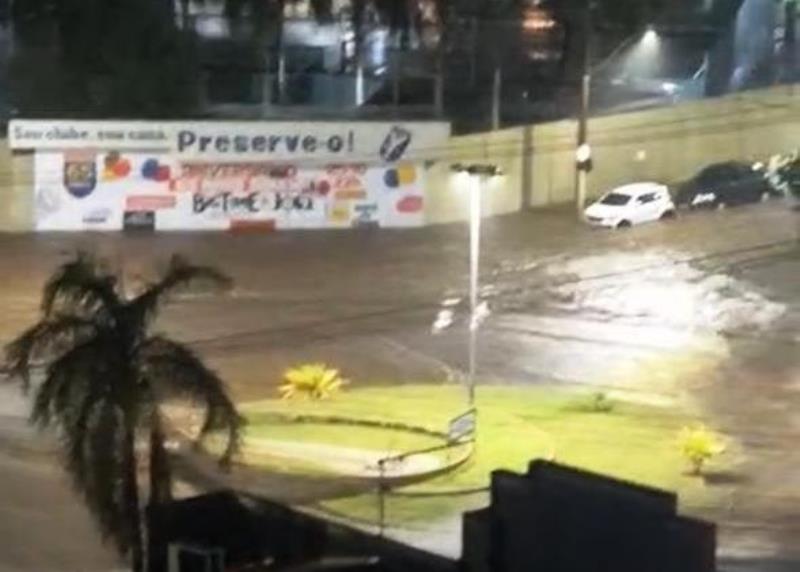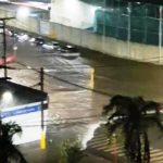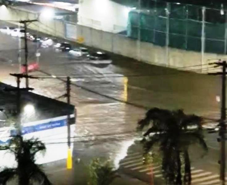 Chuva alaga novamente trecho da rotatória da Prefeitura, problema crônico