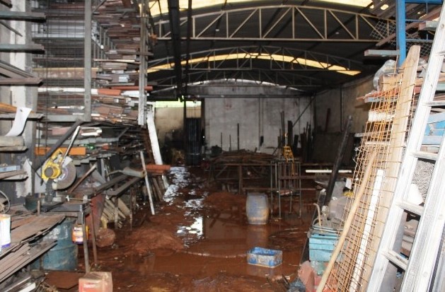 Uma serralheria localizada no caminho da enxurrada, foi invadida pela água a uma altura de 50 centímetros.