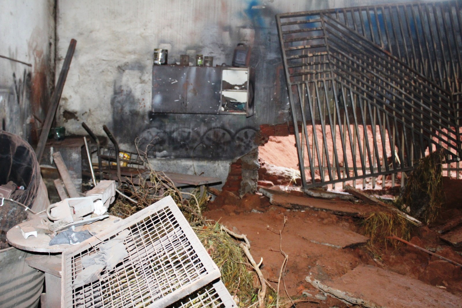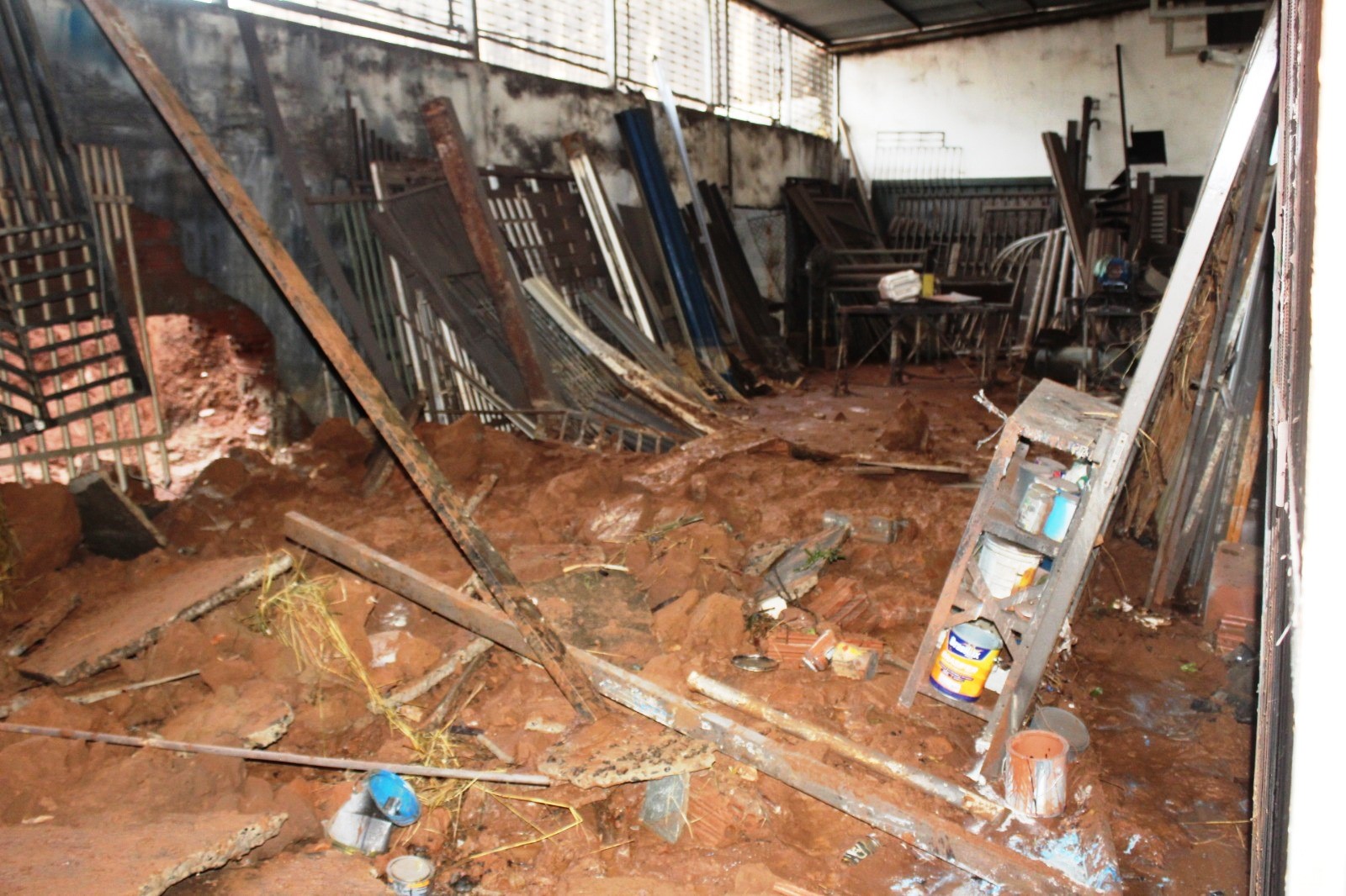 O estabelecimento fica na Rua Alameda da Saudade, a lama acabou atingindo portões pintados recente, ferramentas ETC.