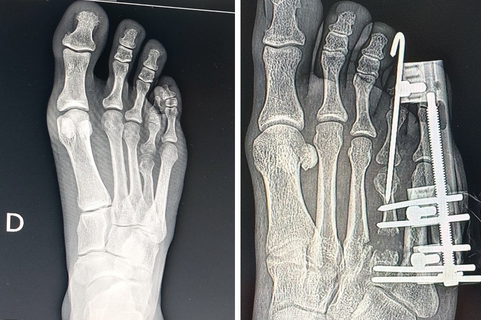 A braquimetatarsia é uma malformação congênita caracterizada pelo encurtamento anormal de um dos ossos do antepé, geralmente o quarto metatarso, condição que pode causar dor, alterações na marcha, dificuldade no uso de calçados e impacto estético significativo. Nos casos indicados, a correção cirúrgica percutânea representa uma evolução técnica, por reduzir o trauma cirúrgico sem comprometer os resultados do alongamento ósseo.