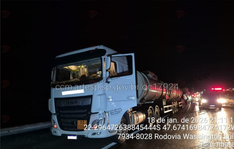 Colisão traseira na Rodovia Washington Luís (SP-310), registrado neste último domingo, 18 de janeiro de 2026.