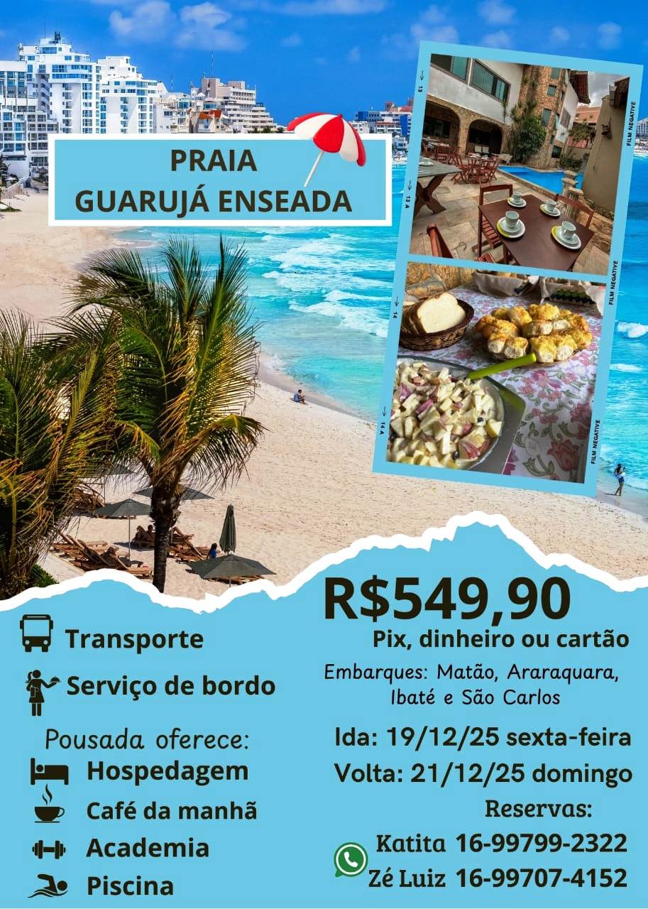 Excursão para Praia – Guarujá, promoção Associação dos Motoristas Solidários de Matão.