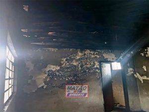 Após o fogo ser controlado, verificou-se que além de parte da residência ter sido consumida pelas chamas, uma moto que estava na sala de estar também foi carbonizada.