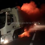 Incêndio consome por completo um caminhão na Rodovia Washington Luís, no Município de Matão SP