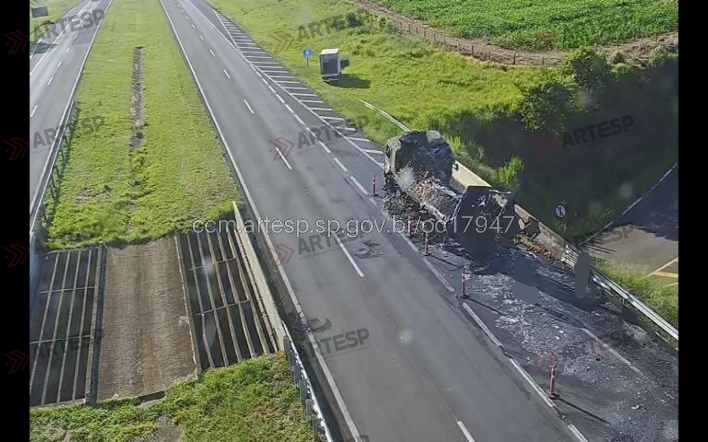 Na madrugada desta quarta-feira, 21 de janeiro de 2026, um caminhão Volvo pegou fogo no km 314 da Rodovia Washington Luís (SP-310), no trecho de Matão, sentido sul (interior-capital).