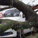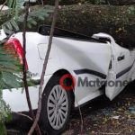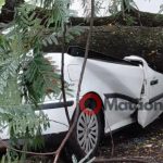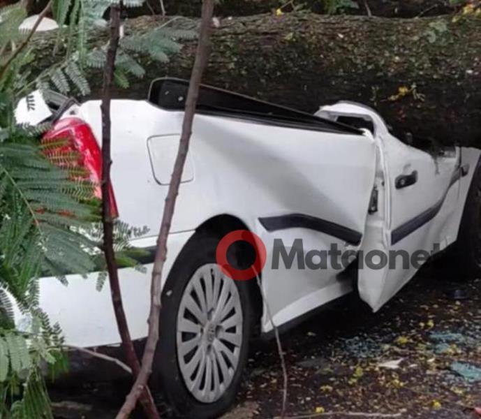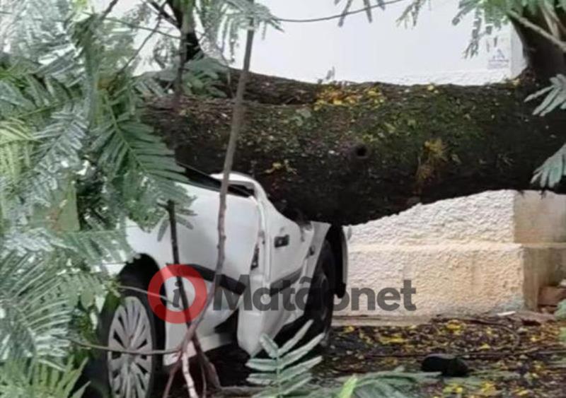 Como o galho caiu sobre ele, o mesmo iria passar por vários exames, para saber se sofreu alguma fratura, mas o estado de saúde dele era estável.
