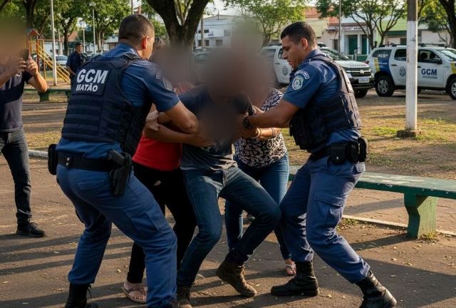 Guarda Civil Municipal de Matão, usa força moderada para deter homem portando drogas na Praça do Jardim Popular em Matão.