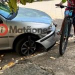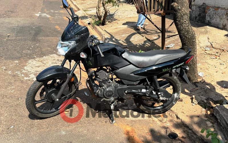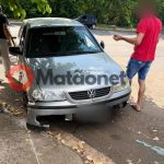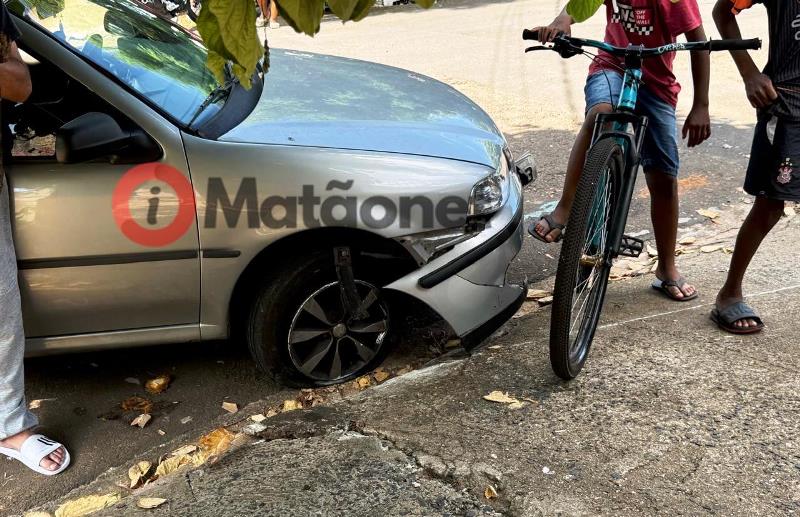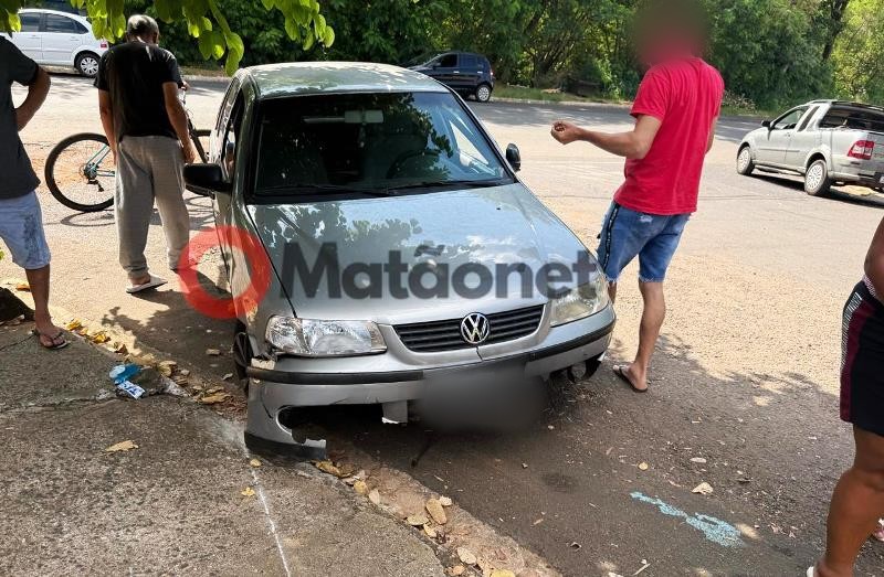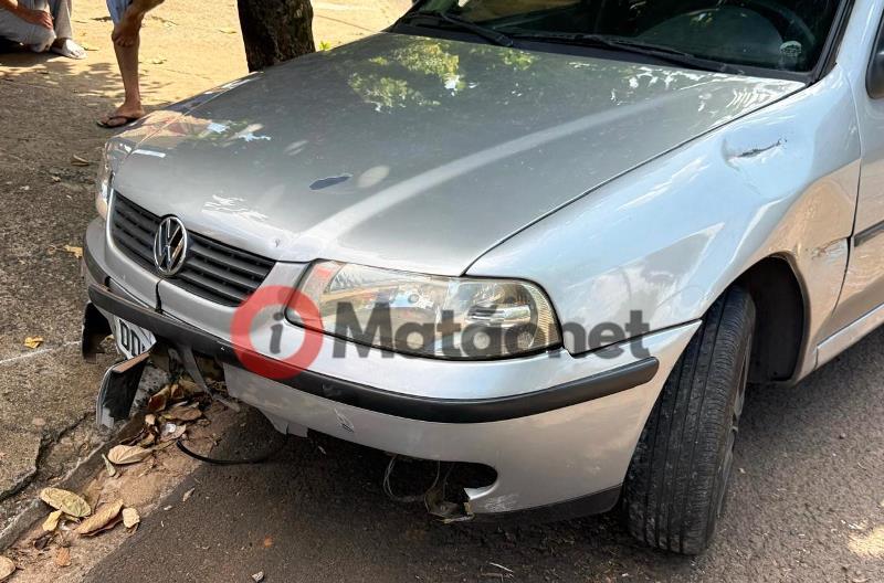 Na manhã desta quinta-feira (25/12) dia de Natal, o condutor de um Volkswagen Gol, acabou atropelando uma moto na calçada no Jardim do Bosque.