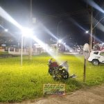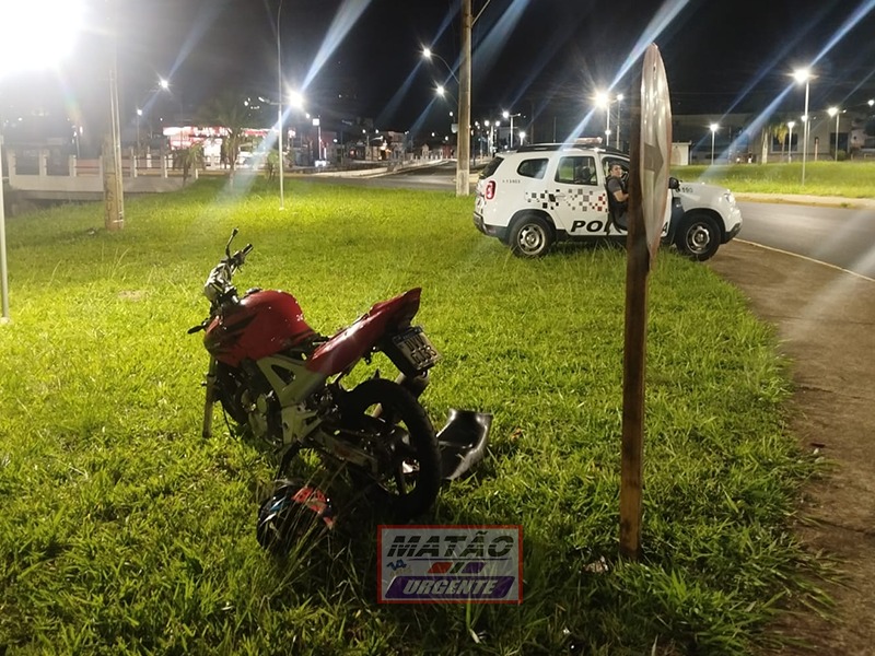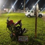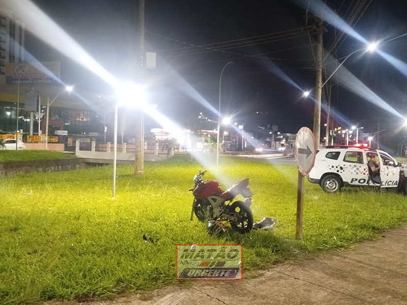 Por volta de 1h20 da madrugada, um jovem de 23 anos, pilotava sua moto pela Rua São Lourenço, quando invadiu a rotatória em frente a Prefeitura.