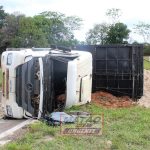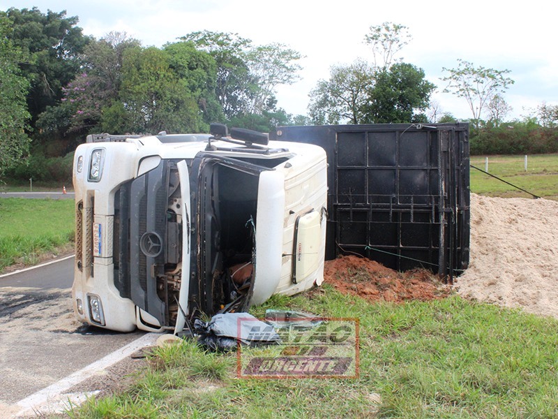 Motorista fica ferido, após tombamento de carreta na rodovia Washington Luís em Matão