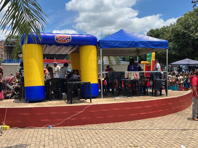 Você é nosso convidado, vai ter Brinquedos infláveis, corte de cabelo masculino e feminino, escova, esmaltação, trancinha e pintura de cabelo, recreação com monitores da Secretaria de Esportes, aferição de pressão arterial, medição de glicemia, com os profissionais da Secretaria de Saúde, adoção de Pets do Canil Municipal