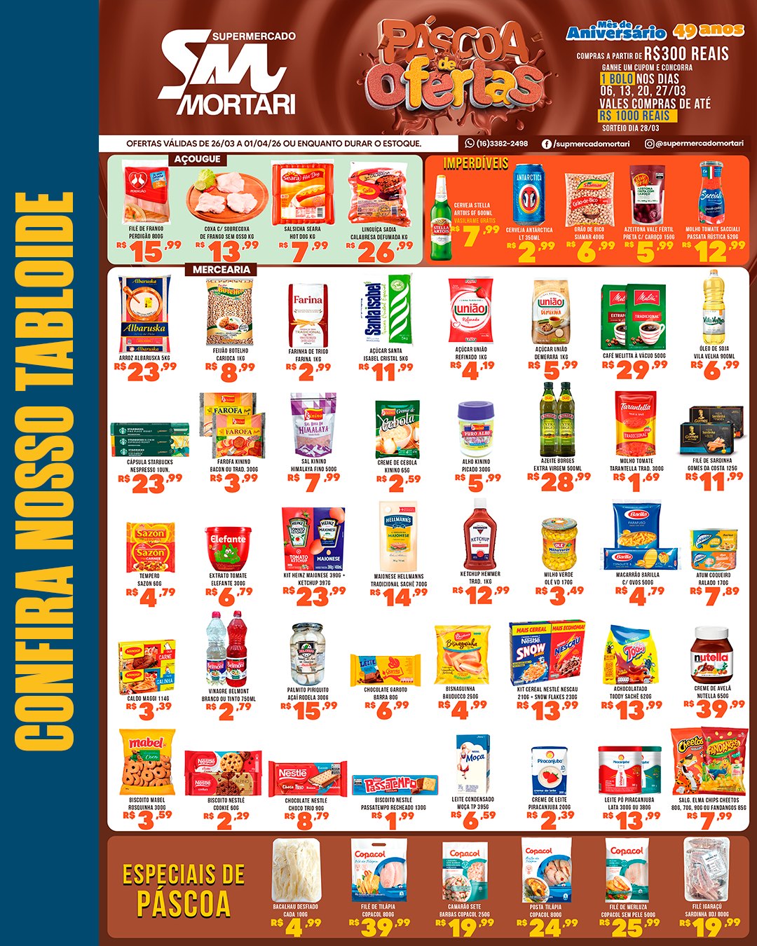 Muitas ofertas especiais para a páscoa! Vem aproveitar o nosso tabloide da semana, válido de 26/03/26 a 01/04/26 ou enquanto durarem os estoques.