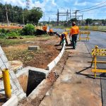 Sequência da construção de guias de meio-fio (SARJETAS) na Rotatória da Avenida Ludwig Eckes – Conjunto Residencial João Vital.