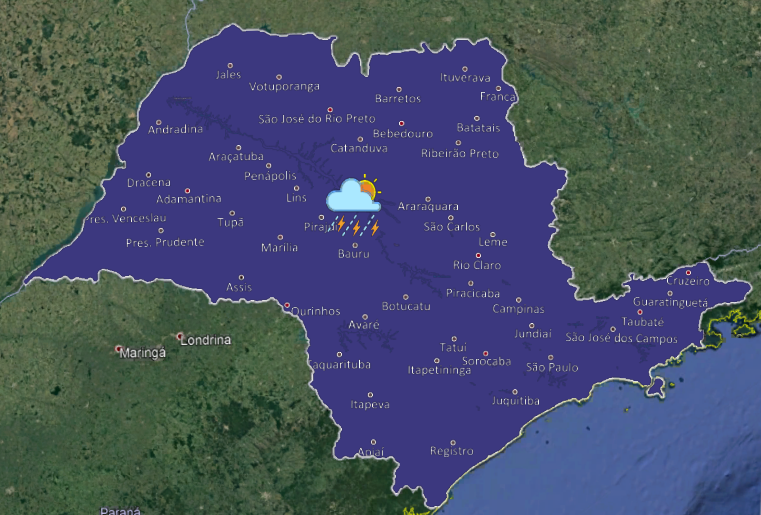 Previsão do tempo para a região de Araraquara, SP, indica um período de instabilidade típica de verão, com pancadas de chuva frequentes nos próximos dias.