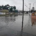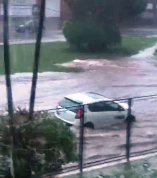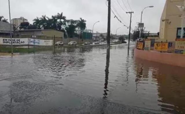 Na rotatória da Prefeitura, ficou intransitável por vários minutos sendo liberado após a chuva, depois que a água escoou para o Rio São Lourenço.