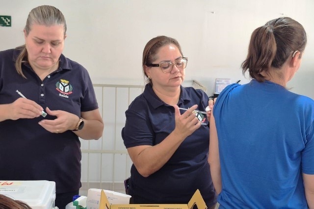 Profissionais da saúde que atuam na linha de frente e, portanto, mais expostos aos riscos como Agentes de Combate a Endemias, foram imunizados contra a Dengue. As doses (21) foram aplicadas na sede da Vigilância Sanitária e Controle de Vetores, antes do início das atividades externas dos trabalhadores que diariamente atuam no enfrentamento à doença por meio de fiscalização e orientação à comunidade. A vacinação contra a dengue também está disponível para crianças e jovens de 10 a 14 anos.